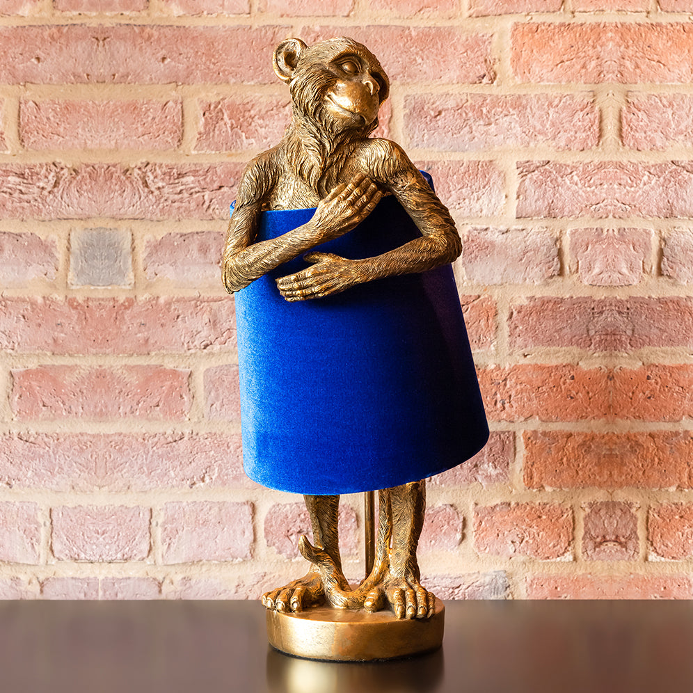 We love our quirky lighting here at Margo and Plum and love to think our lights not only have a function but bring with them a happy evoking element like our Gold and Royal Blue Monkey Lamp.