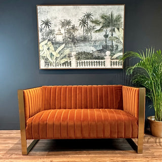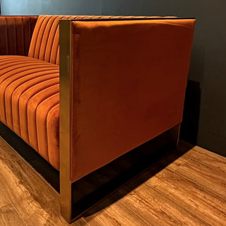 Orange Velvet with Gold Trim 3 Seater Sofa