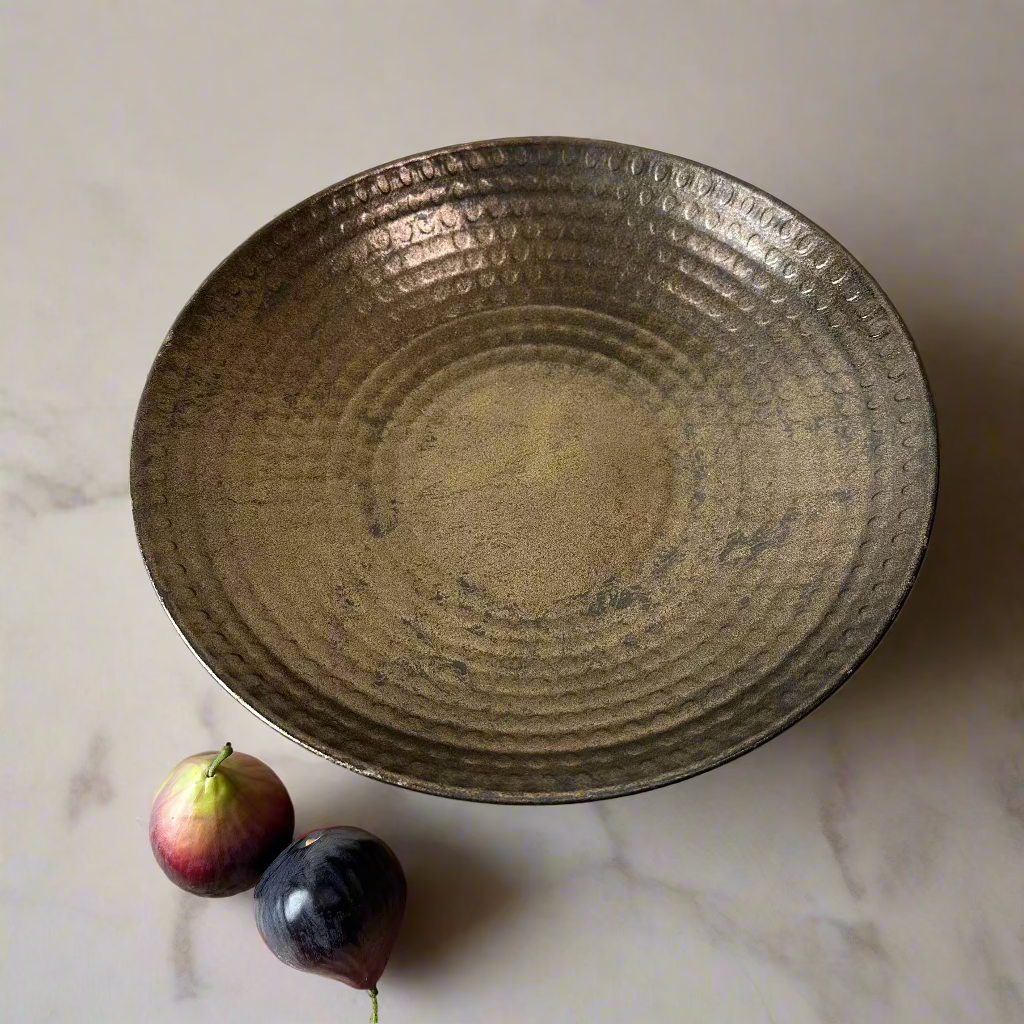 Richly coloured green textured glass which is complimented with a polished gold trim to create a beautifully stylish bowl.