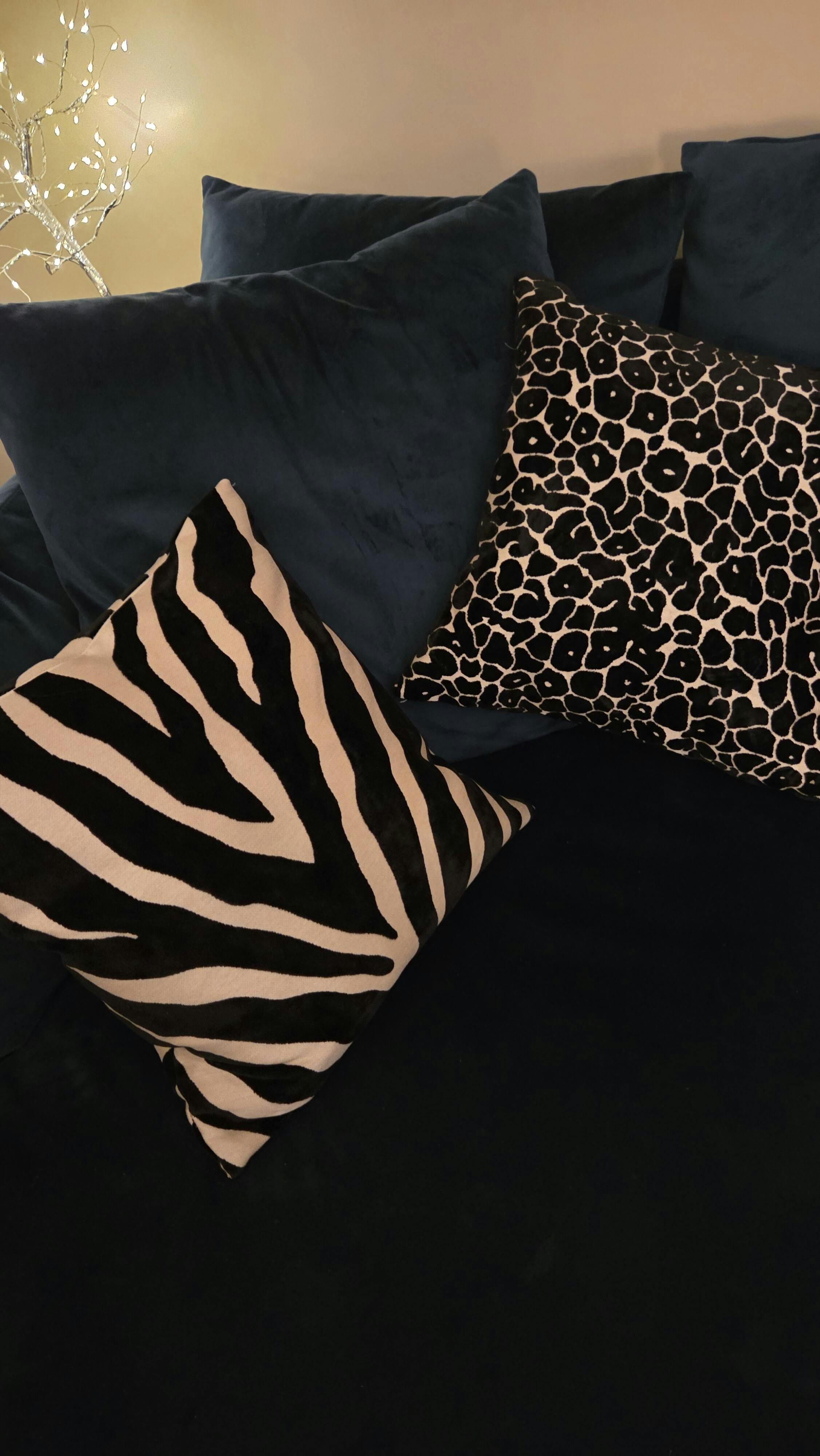 This 'Black and Ivory Leopard Print Velvet Cushion' contains a feather filled inner ensuring that it will hold is shape and super plumpness.